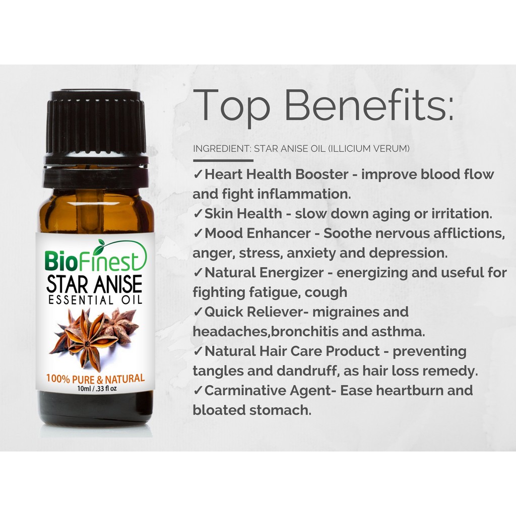 Biofinest Star Anise Oil - 100% Pure Star Anise Essential Oil - Ease Cough, Flu, Asthma, Menstrual Pain- Quality - Therapeutic Grade - Best For Aromatherapy - Free E-Book (10Ml): Amazon.sg: Beauty